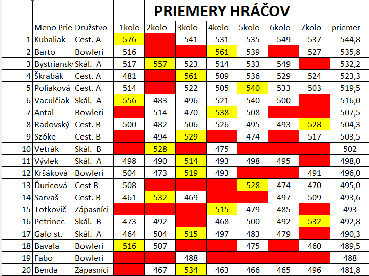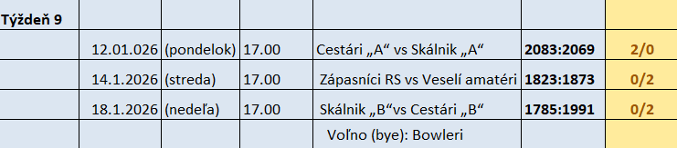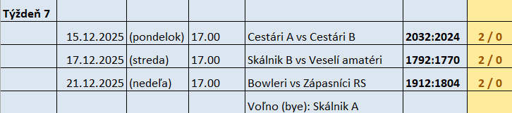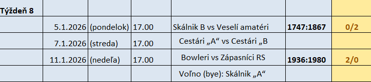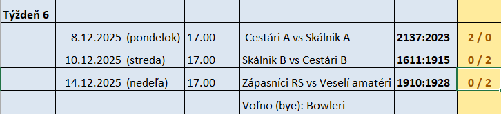 VÝSLEDKY ZÁPASOV: 11.kolo 8.kolo neodohrané Cestári A - Cestári B