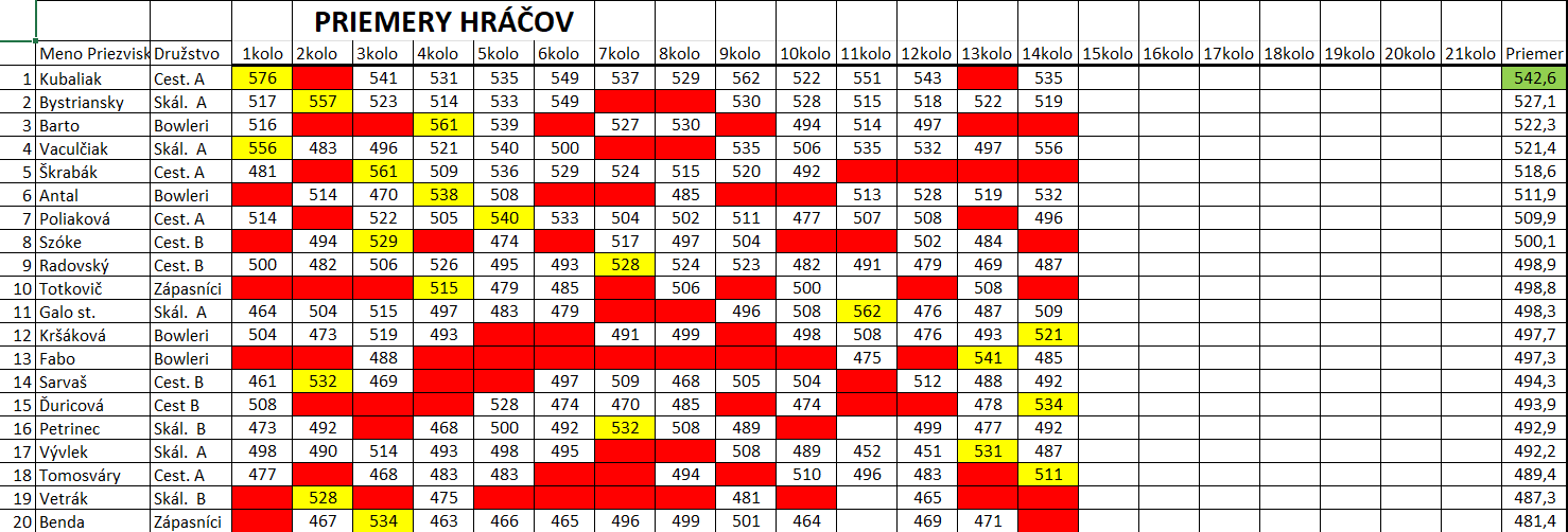 Priemery hráčov: |