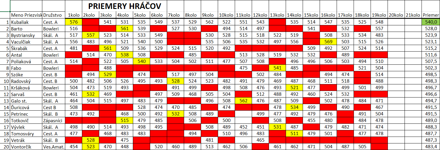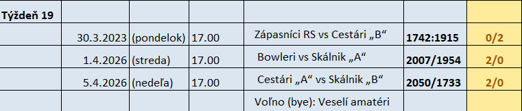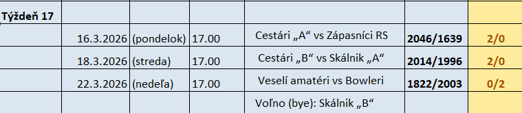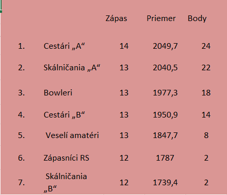 Vyžrebovanie mestskej kolkárskej ligy: |